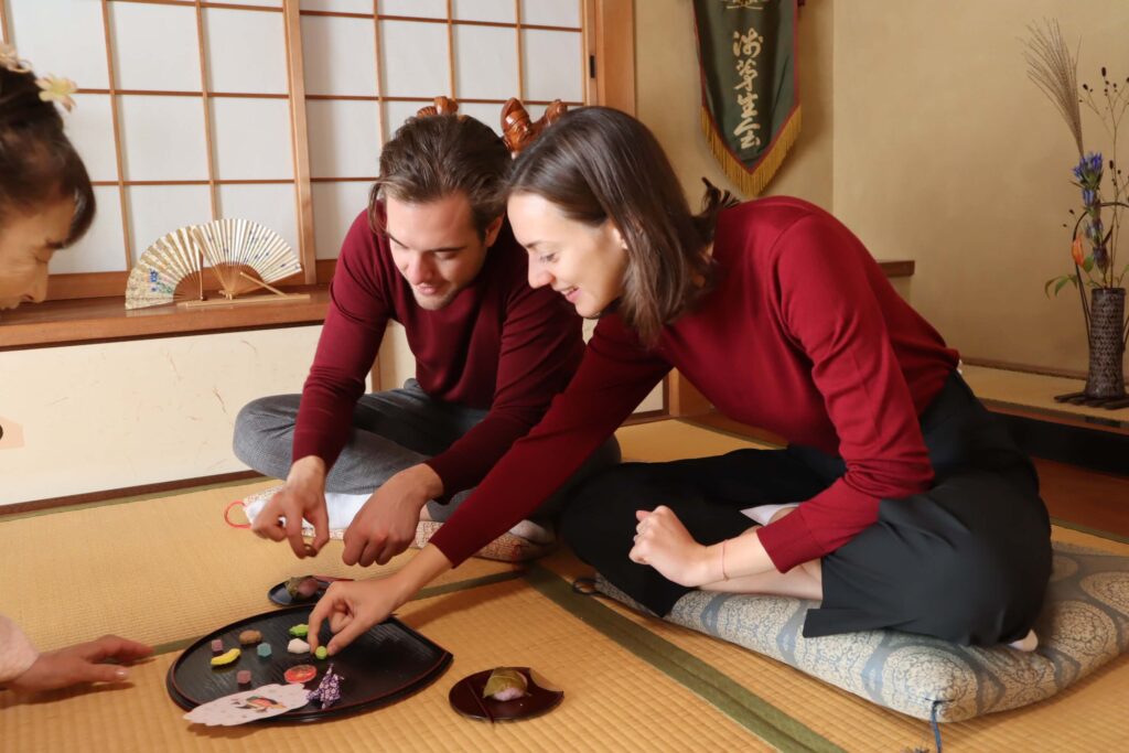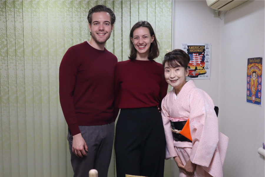 The doorbell rang, and when I opened the door of the house, smiles broke out on the two people’s tense faces. ‘Welcome to Komurasaki An,’ I said, inviting them inside. They were wearing matching wine-colored sweaters that really suited them. They are from Hungary, studied economics at university, and earned their master’s degrees last year. They currently live in Switzerland.